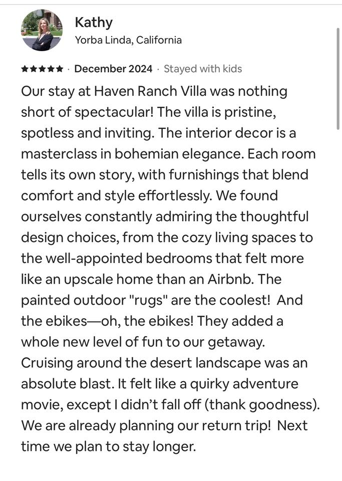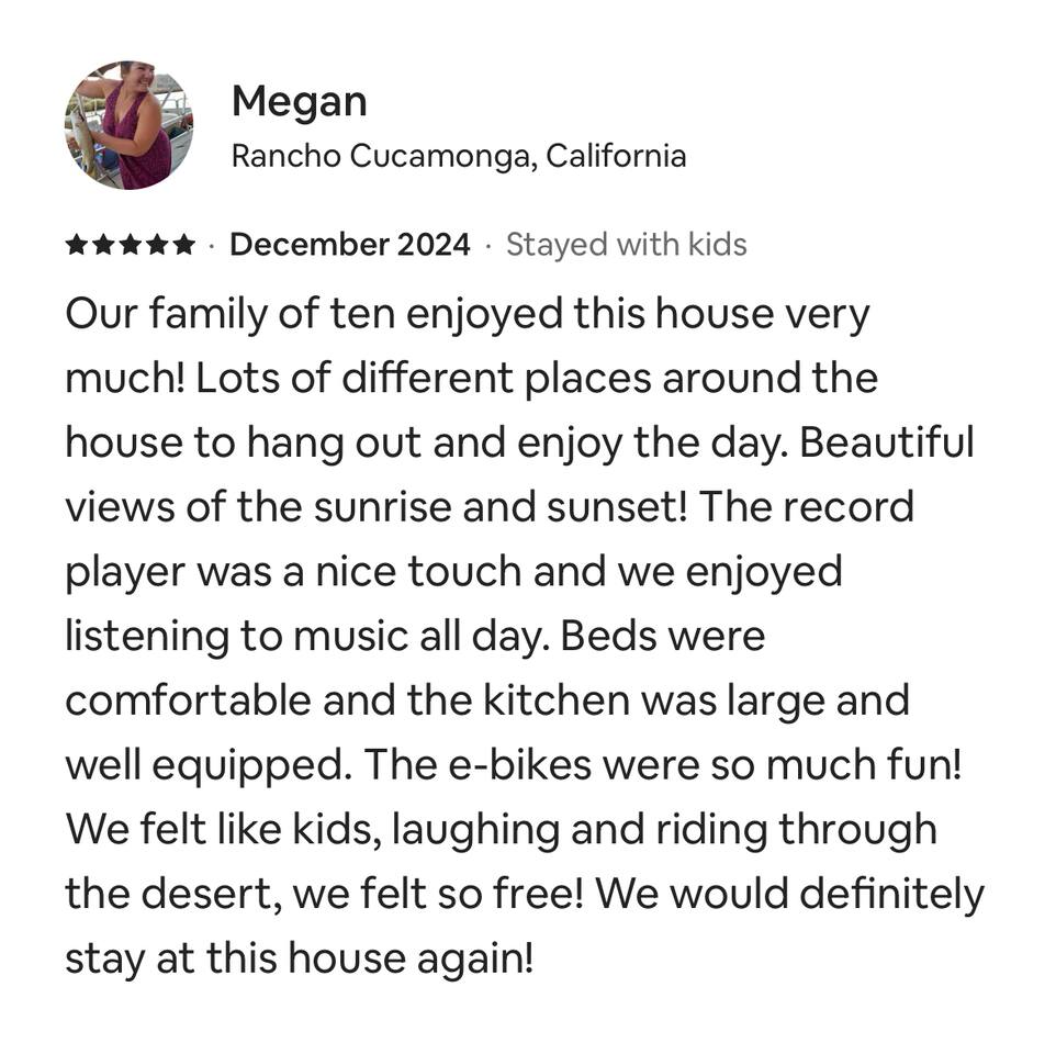 📣 The e-bikes were a blast to take to Joshua Tree National Park and it was a beautiful ride there! Other amenities: ✔️ 4 hammocks ✔️ Record Player ✔️ Wet Bar ✔️ Den ✔️ Stargazing Bed
