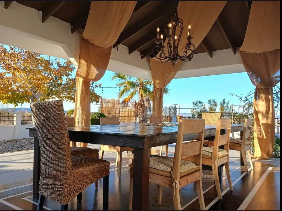 ✨A gem in the desert with several indoor and outdoor spaces for you to enjoy all day & night! 🎙️”The house has a bit of something for everyone. We particularly enjoyed the hot tub, desert bed, riding the e bikes through the desert” ⭐️ Only Airbnb w/ E-bikes (Available for 1 day) ⭐️ Unique Day Bed For Stargazing ⭐️ Games ⭐️ 2 Fireplaces ⭐️ Custom Dining w/ Fire Table ⭐️ Pool (Solar Heated from April 1 - Dec 1) ⭐️ Hot Tub 📍8 mins to Indian Cove Campground 📍10 mins to JTNP