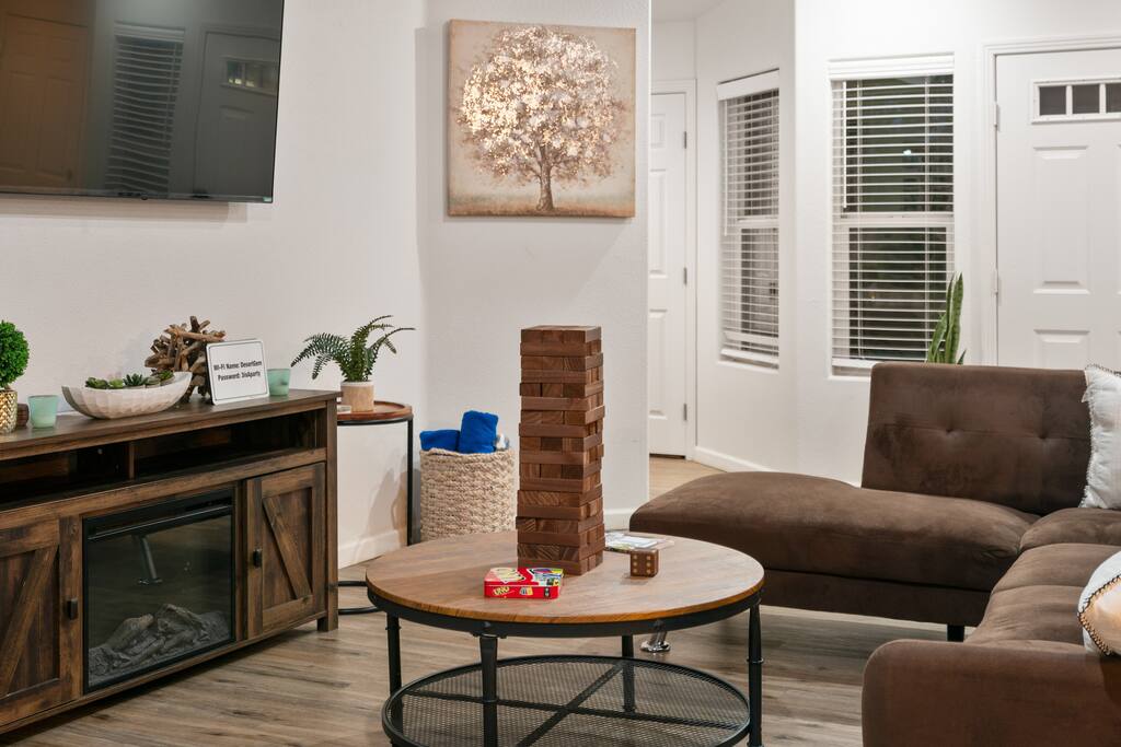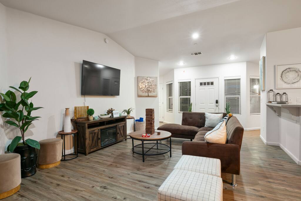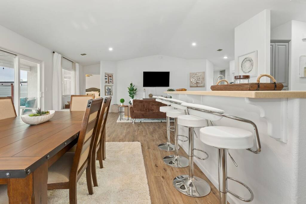 House Rules: — Please be respectful of our home and of the neighbors - this is a quiet community, and as such we require that guests avoid loud music, parties at night, and hosting large groups. If we receive a noise complaint, we will have to contact the appropriate authorities and upon a 2nd noise complaint you will be evicted. - Please keep in mind the check-in and check-out times. If you need an early check-in or late check-out, feel free to reach out and confirm your request 48 hours before the date requested. That way, we can ensure that the cleaners have the time between guests to make the space spotless. There will be a $75 charge for each check-in/out adjustment. — No smoking at all inside or outside, please. If our cleaners smell smoke, you will be charged $300.00. Smoke of any kind leaves a smell for the next guests so this is a very important rule to follow- thank you in advance for your compliance! Parties and Events - Parties and events are strictly prohibited. Quiet hours, which start at 10 pm, are strictly observed. To ensure that our guests do not exceed a certain volume level and disturb our neighbors, we use a NoiseAware decibel level monitoring device. They are located in the home's common area. Any evidence of a party or event, including camera footage, excessive garbage, or other evidence will result in a fine of $500.00, legal action, and possible eviction without reimbursement, plus the cost of any extra cleaning or damages that result from the event. We have ring cameras in the front and the back of the house for security purposes. We kindly remind all guests that tampering with or unplugging Ring cameras is strictly prohibited. These cameras play a vital role in ensuring the security of our premises and protecting both you and our property. Please be aware that any unauthorized interference with the Ring cameras will be taken very seriously. In accordance with our policies and local regulations, guests found engaging in such actions may face fines of up to $500. — If you make a mess, we ask that you please clean it up. An extra cleaning fee will be imposed if the house is left in disarray. —Pet fee - You can bring your pet but must be authorize first for $150 and $50 per additional pet —Trash pick up is every Friday kindly leave the bins outside the night before if you happen to be staying during the schedule :) Please note: A trailer truck may come by and park on the side of the house during your stay but they won't bother you at all, and will keep to themselves. If you have any questions before you arrive, let us know; we'll be happy to help!