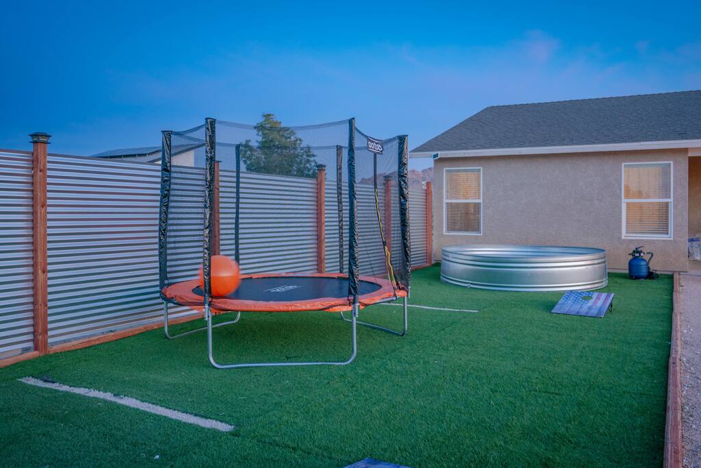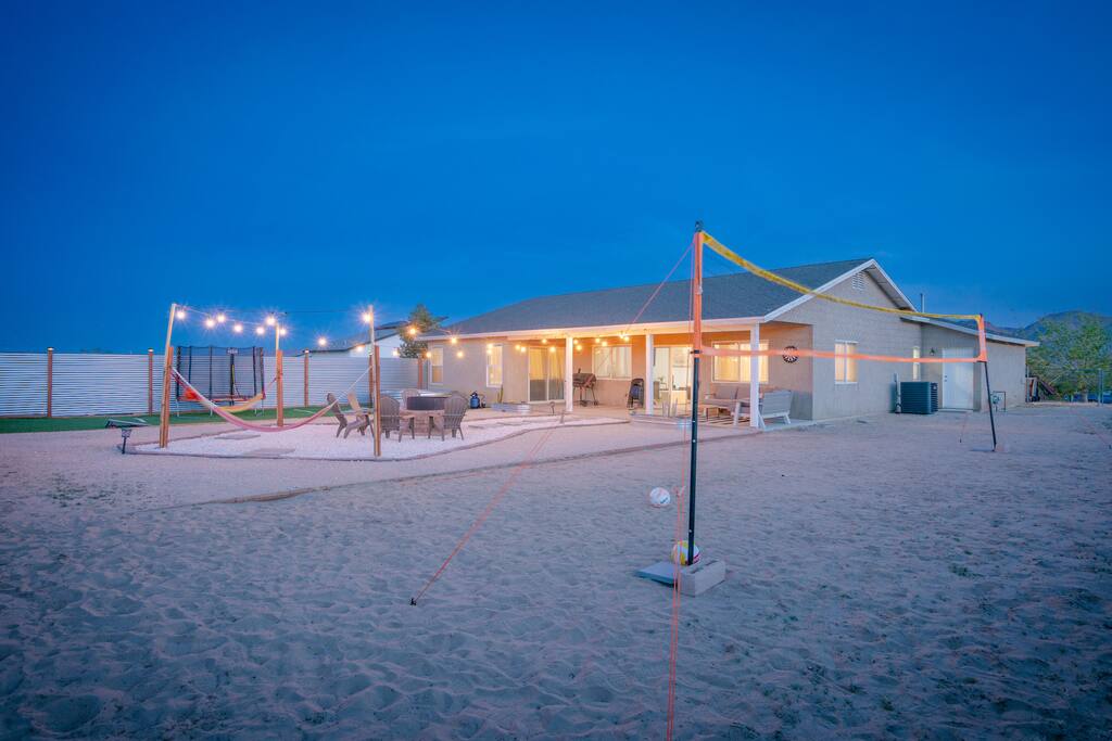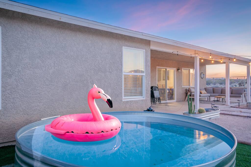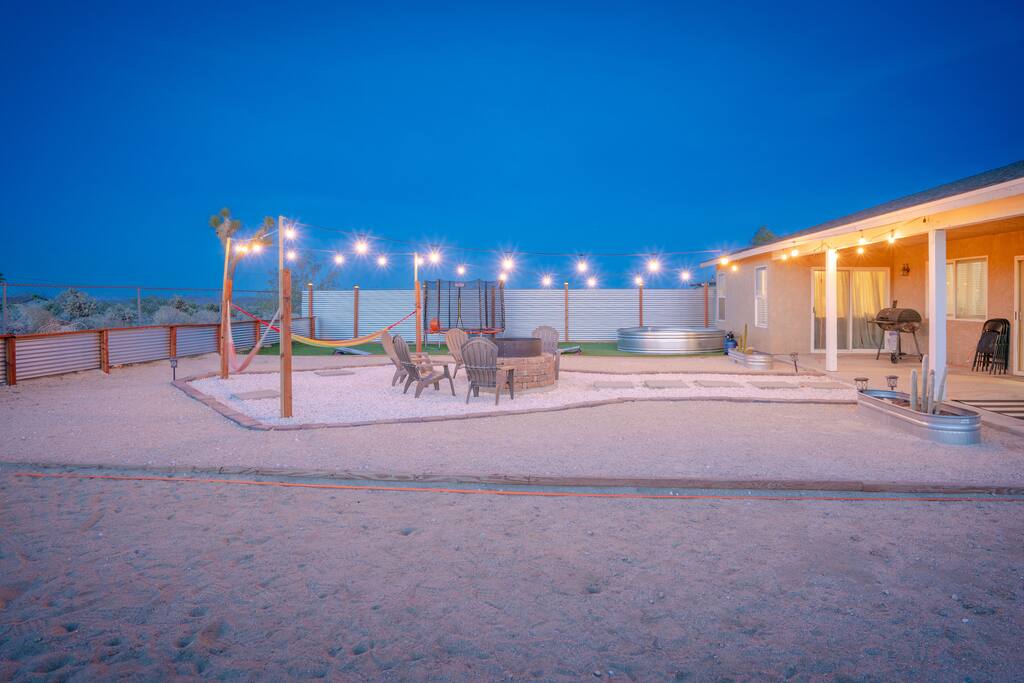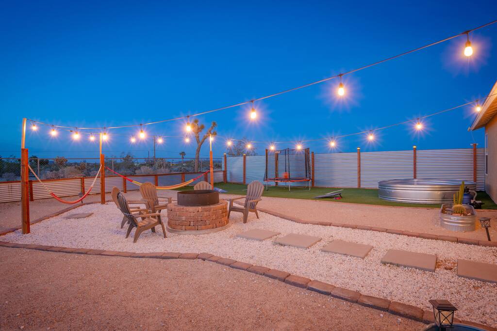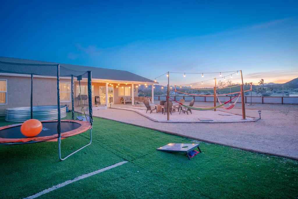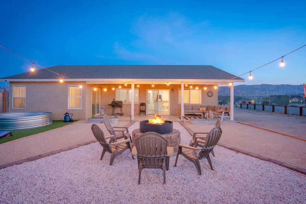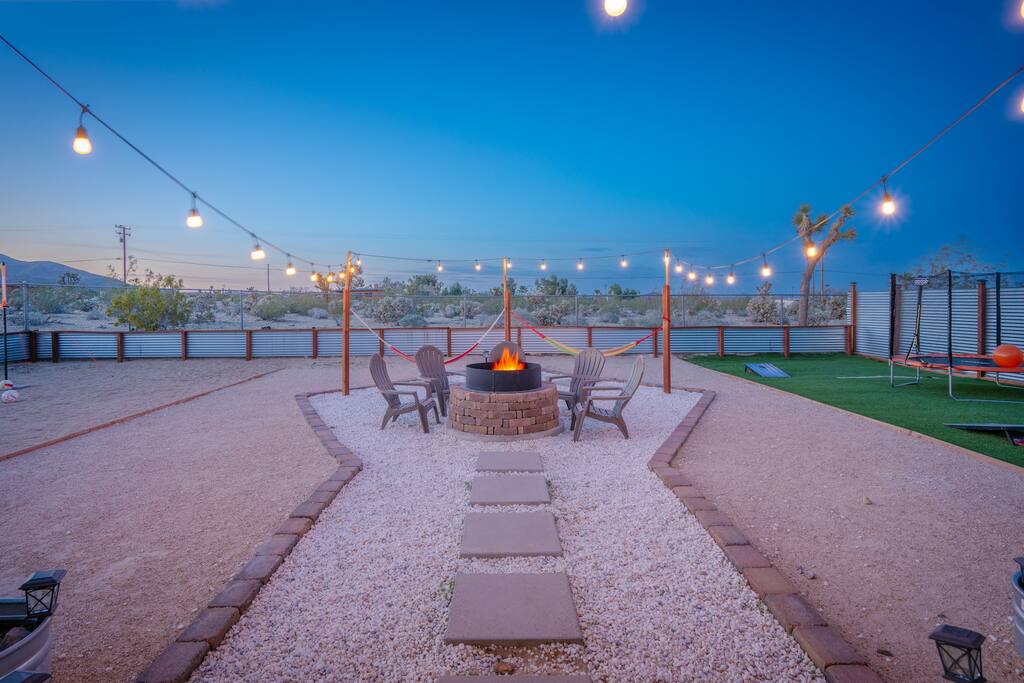 🎙️”Perfect spot for a family or friends retreat. House is well set up for many guests and has an awesome outdoor area with seating, fire pit, and space for games…” ⭐️ Very Spacious For Big Groups ⭐️ Fully Stocked Kitchen ⭐️ Curated Backyard For Fun ⭐️ 65” Smart TV ⭐️ Huge Fire Pit Area ⭐️ Games For All Ages 📍 5 Mins to Joshua Tree National Park 📍 12 Mins to Hi Desert Nature Museum