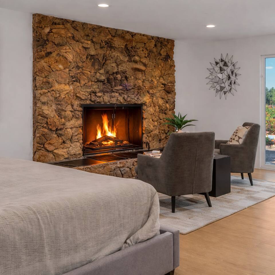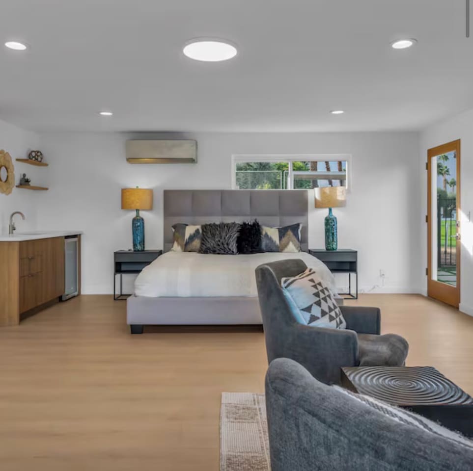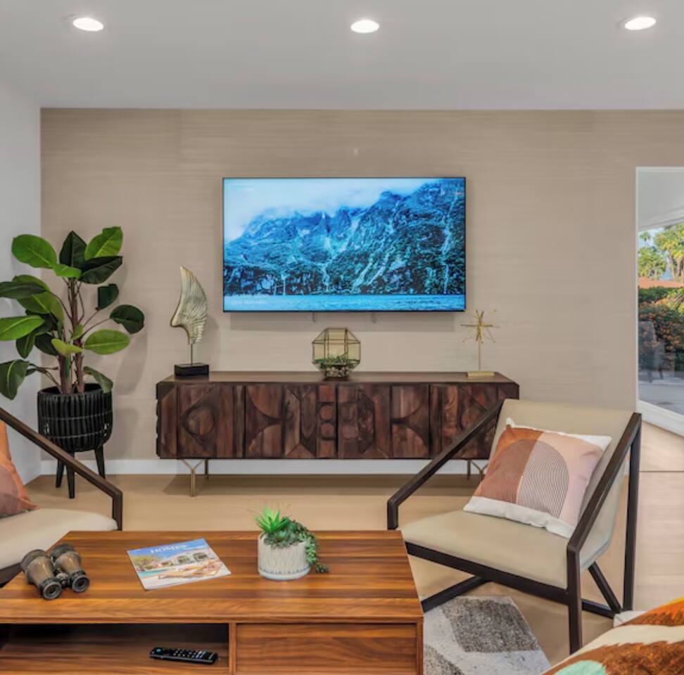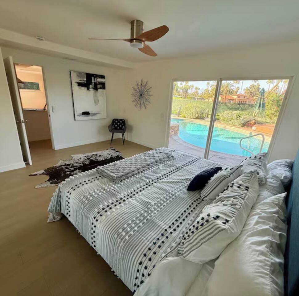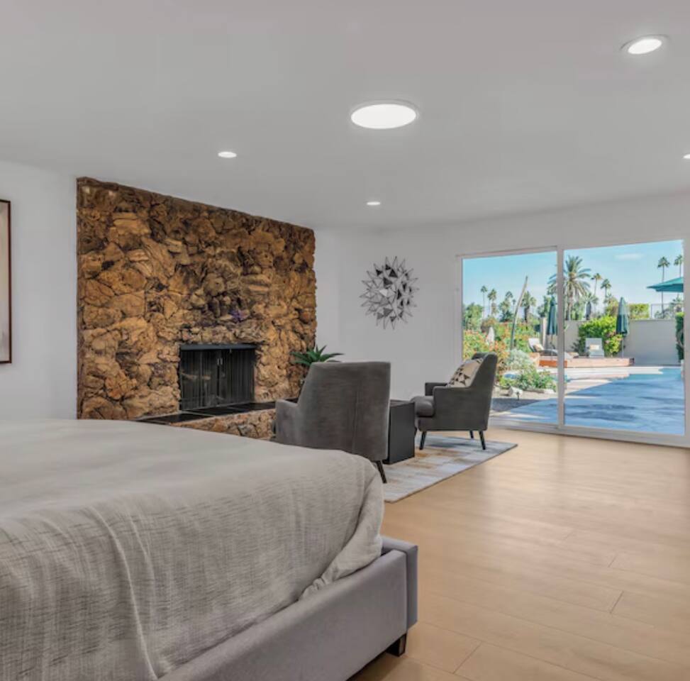 “This house has everything you need for the perfect Palm Springs getaway! Modern, gorgeous, heated pool, golf just steps away, and the location is perfect for exploring the city!” Extra Amenities: ✔️ High Speed WiFi ✔️ Fully Stocked Kitchen ✔️ Gas Fireplace ✔️ Coffee Maker Bedroom Layout: Room 1 - King Bed Room 2 - King Bed Room 3 - Queen Bed Room 4 - Queen Bed