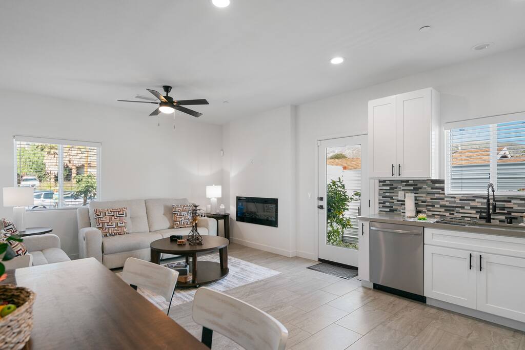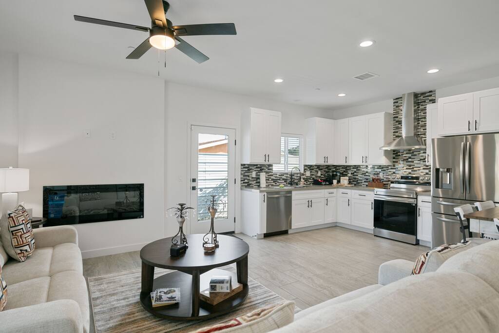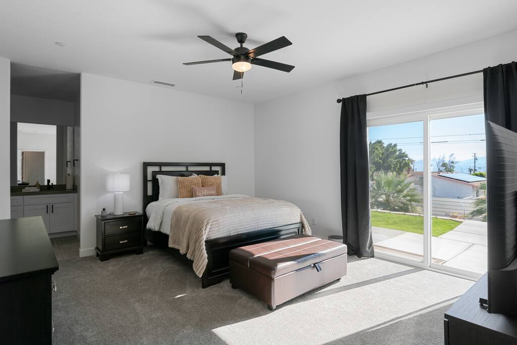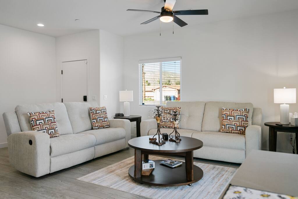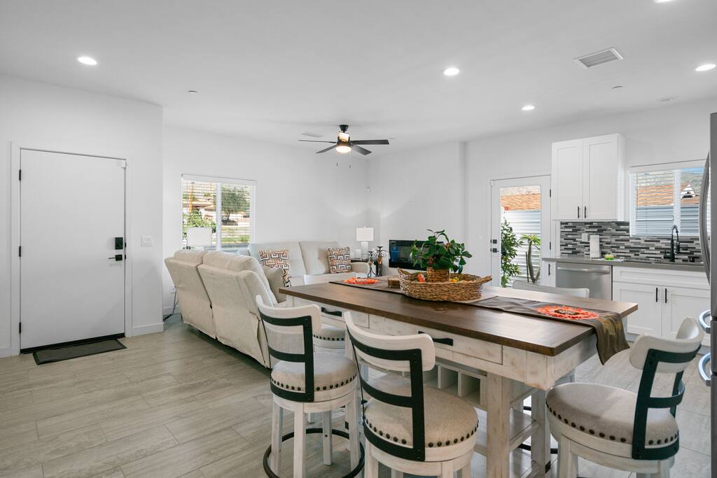 “Such a warm comforting home away from home! A great place to work remotely, relax, and to explore the desert!” ⭐️ Dedicated Workspace ⭐️ Ergonomic Chair / Organizer ⭐️ Two Electric Fireplaces ⭐️ Complimentary Coffee Bar ⭐️ Stocked Laundry Room ⭐️ High Speed WiFi Location! 📍2 mins to Cabot’s Pueblo Museum 📍 5 mins to Local Hot Springs & Spas 📍20 mins to Downtown Palm Springs Layout! ✔️ 3 Queen Beds ✔️ Central AC/Heat ✔️ ADT Alarm System ✔️ Blackout Curtain