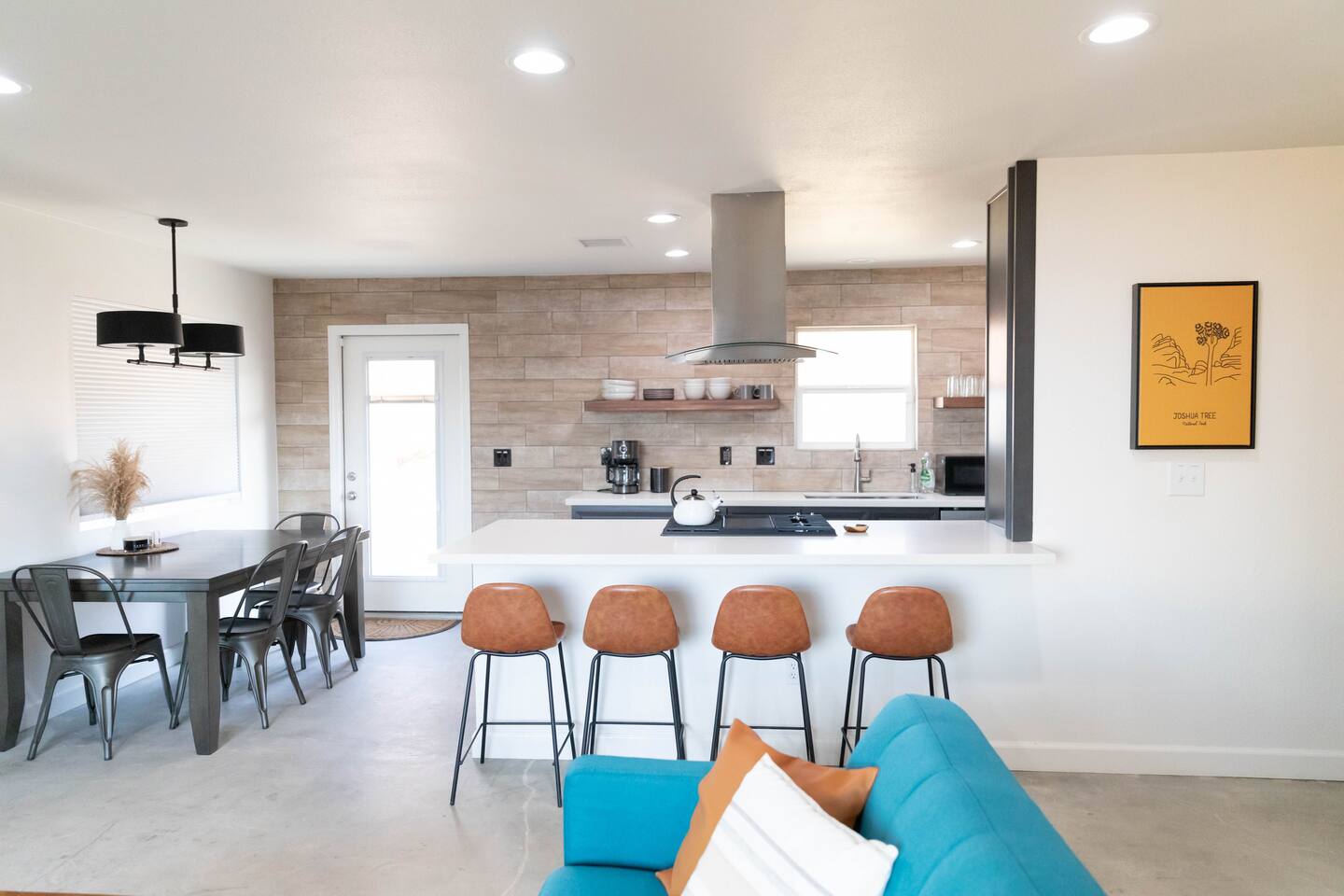 Guests are able to enjoy and unwind in the entire house and outdoor spaces. The garage including the washer and dryer are not accessible to guests. This space is for housekeeping only. We reccomend Alamo Laundromat 6343 Adobe Rd Twentynine Palms, CA 92277. They offer wash and fold service as well as self serve options. Joshua Tree Laudry is the closest self serve option, with lower reviews.