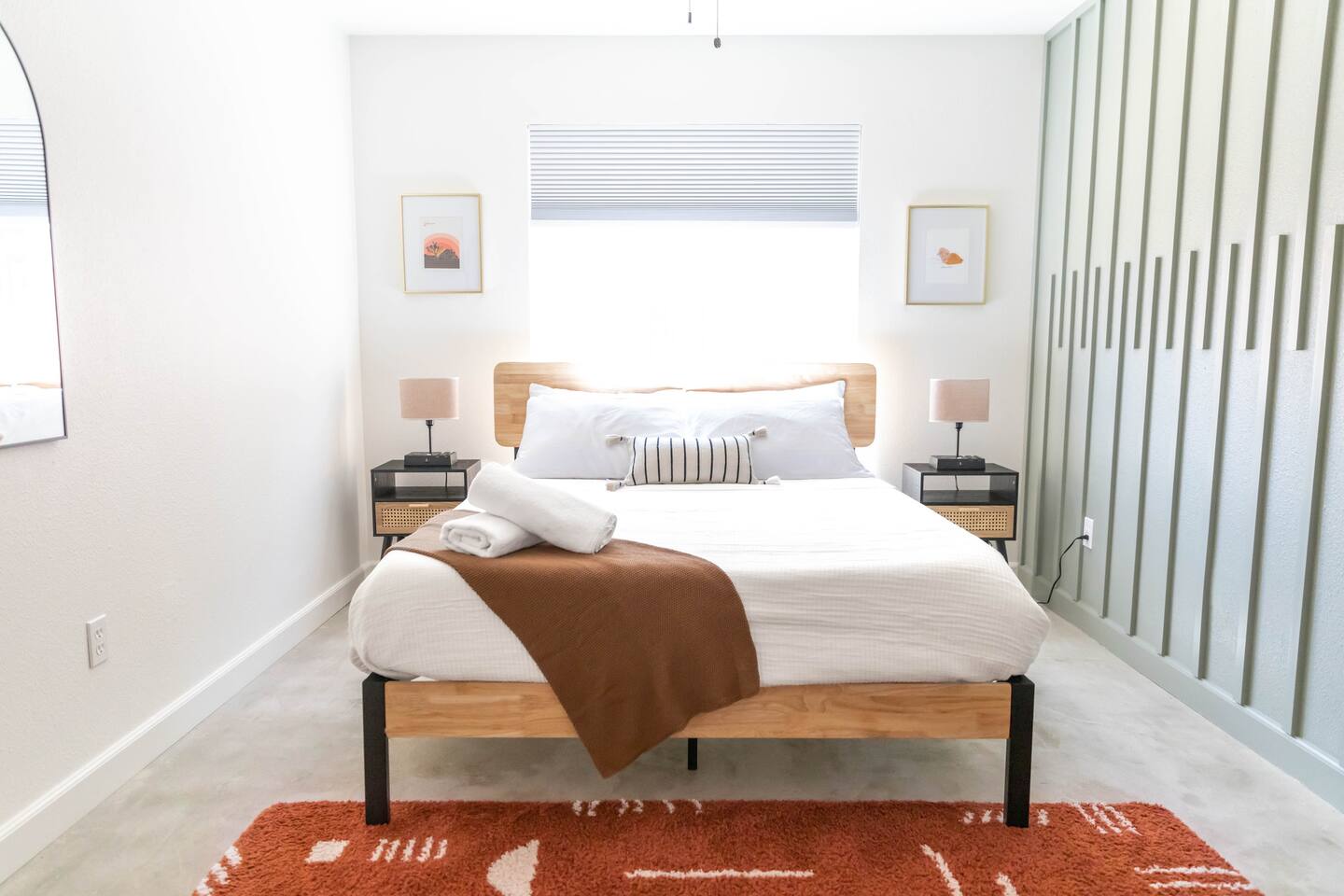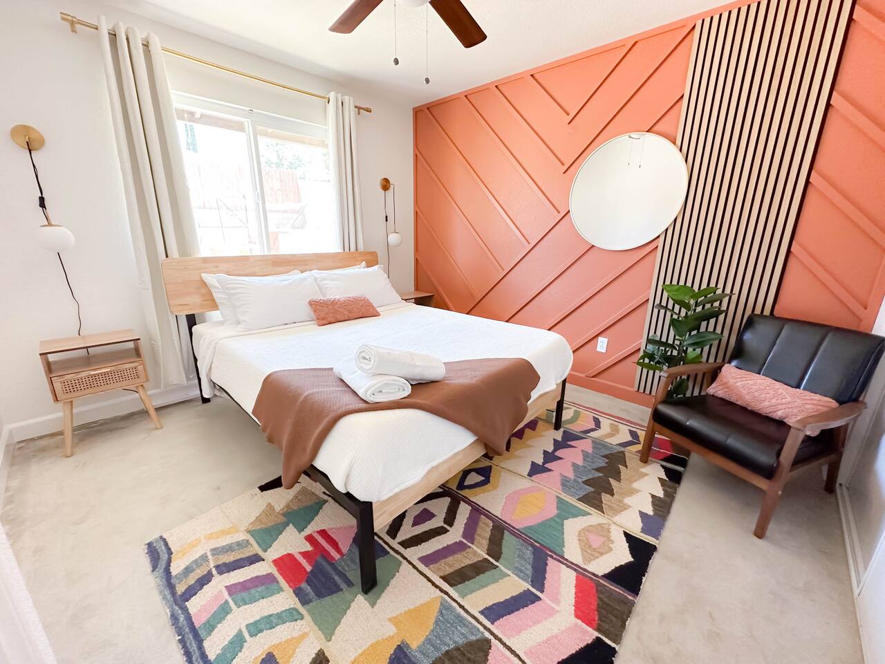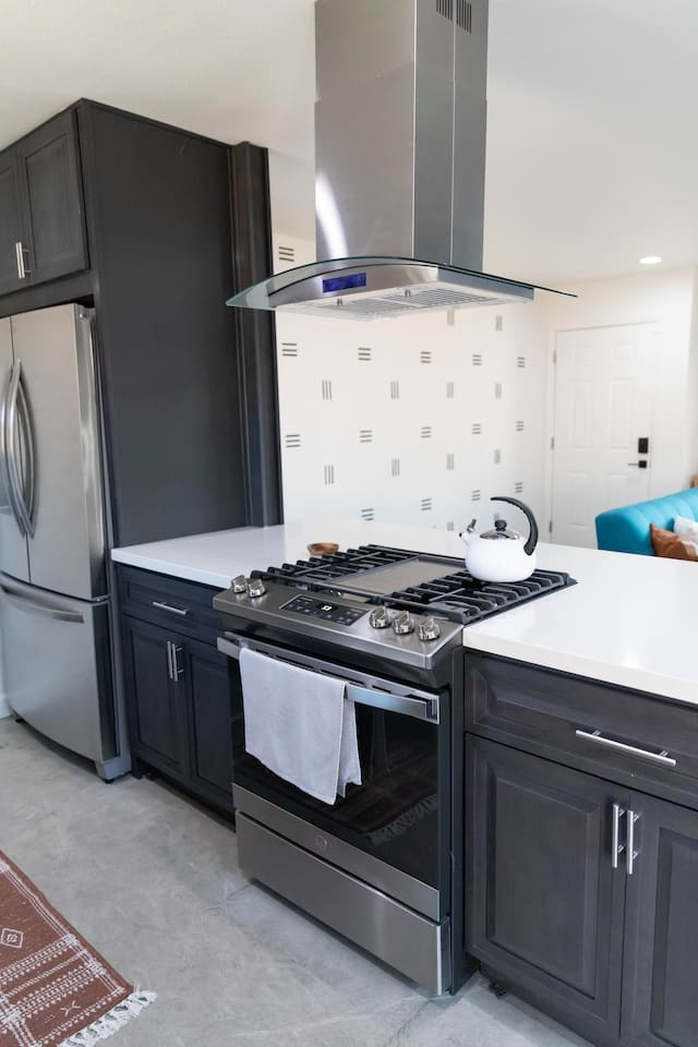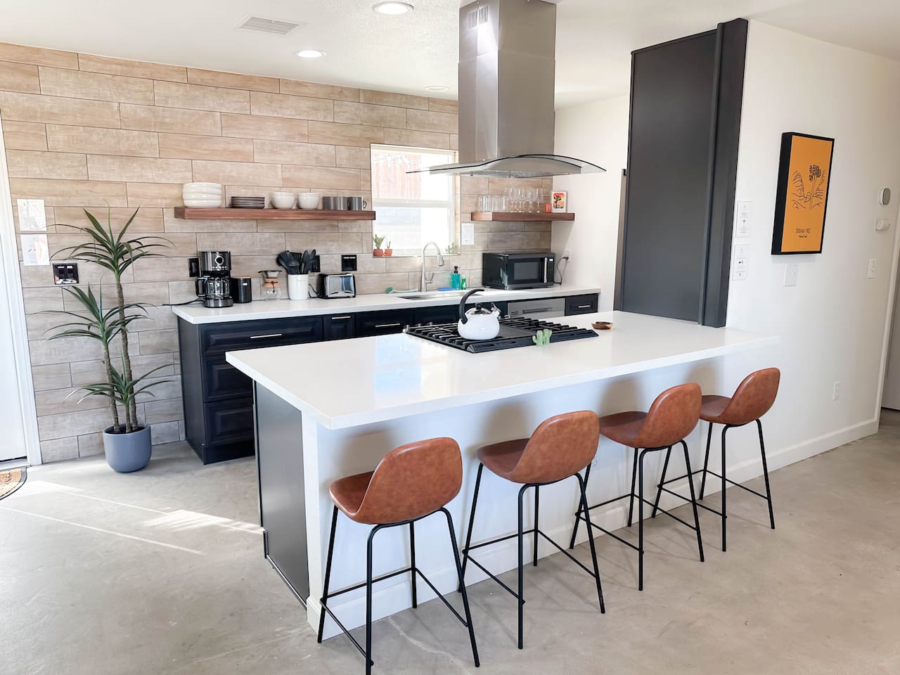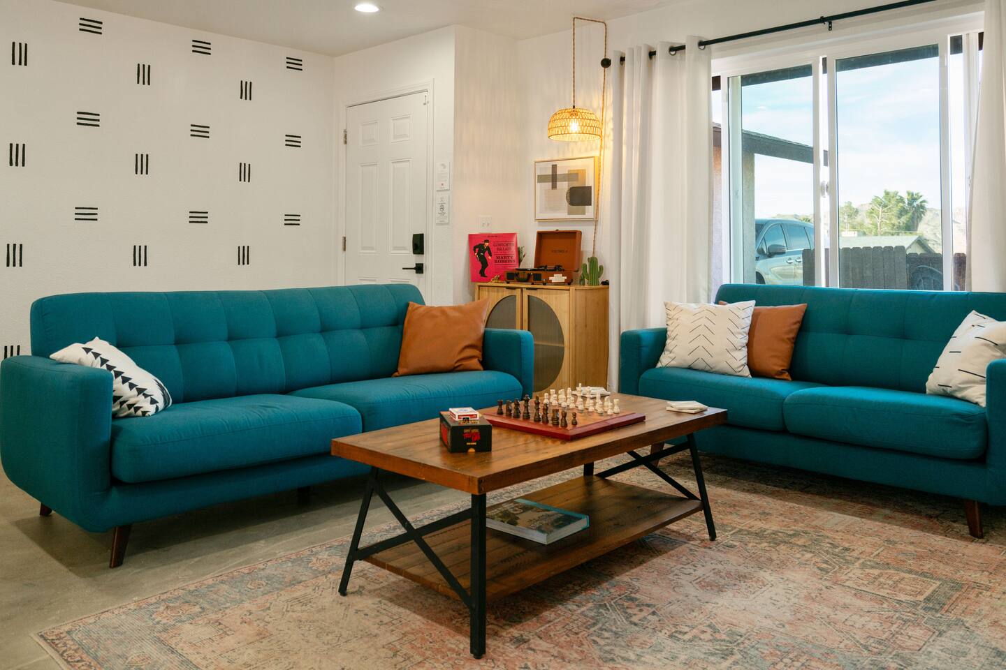 **Please note that the Cowboy Pool is only filled and available for use during the warmer summer months. It will be closed from October through April and will reopen on April 1st.** ☼ Home Highlights • Beautiful Backyard Oasis • Located in a quiet and safe suburban neighborhood • Hand-crafted colorful accent walls in each bedroom ♡ • Hand-painted accent walls in the living room & bathroom ♡ • Air Conditioning/heating/ceiling fans • Enjoy the perfect ambience of our electric fireplace in the living room ☼LIVING ROOM☼ Relax on the couch with a cozy movie night on our Smart 55" TV, and turn on the electric fireplace to create the perfect ambiance. Multiple streaming services are available on the smart TV including Netflix, Hulu & Disney+, but you will need to provide your own login. Play some tunes on the Victrola record player, while you gather around and indulge in some friendly competition playing UNO and other games. In the record player cabinet you'll find a selection of records, books, and games for all ages to enjoy during your stay. ☼KITCHEN & DINING☼ The fully equipped kitchen has everything you should need to make tasty meals for the group. Featuring a stainless steel gas range, refrigerator & dishwasher. For your convenience, the refrigerator provides filtered water for drinking. Our floating shelves are fully stocked with plates, bowls, mugs, cups and wine glasses. While the cabinets are stocked with all basic kitchen essentials like pots, pans, utensils, and essentail spices and oils. We also have a toaster and microwave. Watch the sunrise with a cup of Jo, we supply organic coffee for the Keurig coffee machine. Tea and hot cocoa are also available. Inside, enjoy meals together at the dining table with a seating of 4, or you can opt for al fresco dining under the desert sky at the picnic table. We added moody ambient string lighting to the picnic table for you to enjoy. ☼BED & BATH☼ Starfall House comfortably sleeps up to 4 guests, making it ideal for couples, or small groups. Both bedrooms offer a comfy night's sleep on a queen size bed. If you should ever get chilly, extra blankets and pillows can be found in the bedroom closets. We also provide a luggage carrier in each room for your convenience and plenty of closet space. Each room features a thoughtfully curated hand-made accent wall, perfect for photos. The “terracotta” bedroom features a unique wall design that instantly puts you in a great mood. There are gold touches throughout the room, the hanging lamps and circle gold mirror. Another thing that makes the terracotta room so special is the amazing backyard view you get right from your window! The "sage green" bedroom has a calm and relaxing feel. It features a dedicated workspace where you can comfortably get any work done. There is an arch mirror so you can get ready for the day and our bedside lamps feature USB ports to charge your phone. Play some tunes on the retro Victrola bluetooth speaker. The home has one full size bathroom, featuring a fun & quirky hand-painted accent wall. We provide complimentary shampoo, conditioner & body wash that you will find in the shower. A hair dryer & a first aid kit can also be found in the bathroom vanity. ☼OUTDOORS☼ Stargaze & recharge in our dreamy backyard oasis. Take a dip in our cowboy pool on a warm desert day. (built inside an awesome octagon-shaped deck!) A great place to capture Joshua Tree memories! We welcome you to curl up in our cozy hammock (one of our personal favorites places to unwind ♡) the perfect spot to read your favorite book or enjoy an afternoon nap. Feeling hungry? Fire up the BBQ for all your grilling and chilling needs. Dinner under the stars? We offer a picnic table with ambient string lighting for guests to enjoy a moody “dinner under the stars” moment. Count the shooting stars while getting warm & toasty around the fire pit. Be amazed as you count craters in the moon with our telescope. Our motto here at The Starfall House is Good company. Good vibes. Good spirits. **Please note that the Cowboy Pool is only filled and available for use during the warmer summer months. It will be closed from October through April and will reopen on April 1st.** Amenities we offer outside: ✦ Front yard • Fire Pit in private front yard • Peaking views of the desert mountains • Ambient string lighting • Chairs with built-in cup holders ✦ Backyard • Cowboy Pool (8ft) with Large Octagon Deck surrounding it • BBQ • Outside seating areas • Picnic table • Hammock • Corn hole • Ambient string lighting **Please note that the Cowboy Pool is only filled and available for use during the warmer summer months. It will be closed from October through April and will reopen on April 1st.** Whether you’re watching the starry night skies from our octagon-shaped deck or relaxing next to the fire pit, you’ll love escaping here in our high desert paradise. A place where you can revitalize your spirits and connect with nature. Our home is a peaceful & relaxing retreat. We put a lot of time, care and love into it, creating fun and colorful moments around the home.♡ You’ll find lots of special design touches throughout the house as they were thoughtfully hand-crafted with love. Other details to note: Please note: • No parties are allowed. Evidence of a party will result in immediate cancellation of yourreservation and a fine will be given. • No smoking is allowed in the interior of the property. However, smoking is allowed in the fenced in area of the front yard of the property. Any evidence of smoking in the house will result in additional fees being applied. • The person that made the reservation needs to be present at the property for the duration ofthe reservation. • Please be mindful of the neighborhood and our neighbors. We ask you that you keep noiselevels down and keep quiet hours from 9pm-8am. Please note there are cameras around the property for your
